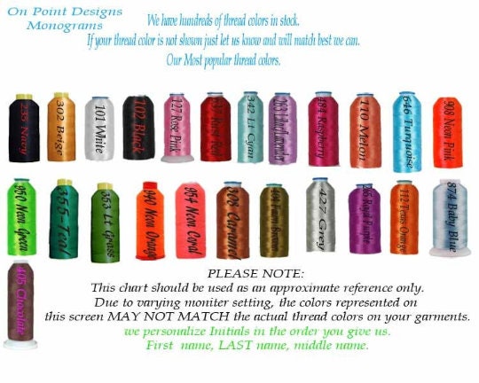 2) THREAD COLOR: Note that the color may look slightly different in person due to your screen settings.